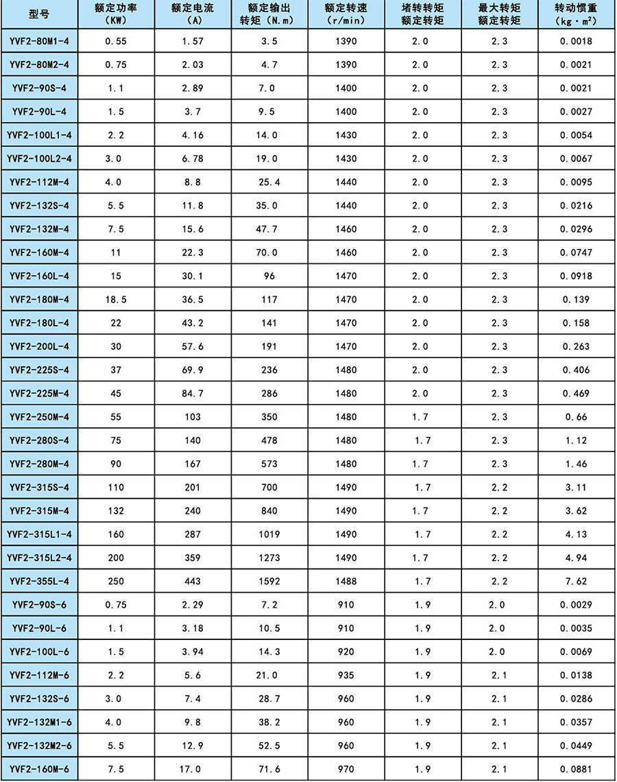 YVF2系列變頻調(diào)速三相異步電動機與SPWM 變頻裝置構(gòu)成的調(diào)速系統(tǒng)與其他調(diào)速方式相比。具有節(jié)能效果明顯,調(diào)速性能好、調(diào)速比寬、快速響應(yīng)性優(yōu)良、應(yīng)用范圍廣、性能價格比高等優(yōu)點,是目前交流調(diào)速方案中**秀的系統(tǒng)之一,可廣泛應(yīng)用干數(shù)控機床的主軸傳動、紡織、化工、冶金等行業(yè)的恒轉(zhuǎn)矩、恒功率調(diào)速以及風(fēng)機水泵等場合的節(jié)能調(diào)速,通過配合高精度傳感器,可實現(xiàn)高精度閉環(huán)運行。YVF2 系列變頻調(diào)速三相異步電動機,提高了防護等級和絕緣等級,降低了噪聲,其電機結(jié)構(gòu)更加合理,外形新穎美觀、安裝尺寸及功率等級符合IEC 標(biāo)準(zhǔn),外殼防護等級為1P54。電動機的定額是以連續(xù)工作制(S1)為基準(zhǔn)的連續(xù)定額,額定電壓為380V,F(xiàn)級絕緣,額定頻率為50HZ。本系列電動機采用了獨立的冷卻結(jié)構(gòu),采用軸流風(fēng)機強迫通風(fēng)冷卻,確保電機在低速恒轉(zhuǎn)矩下長期運行時溫升不超過允許值。